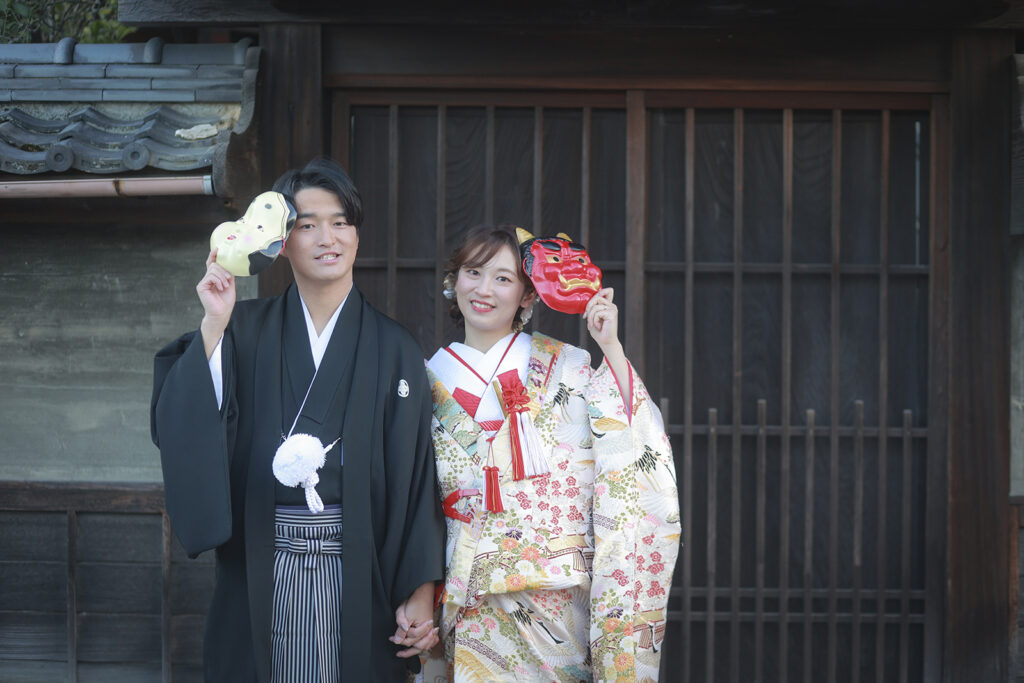 格式ある和装の中にも、いつもの笑顔と遊び心を忘れないおふたりへ。