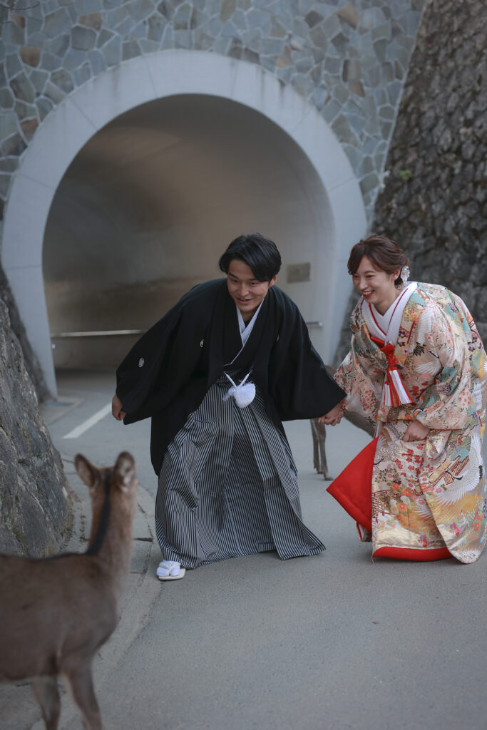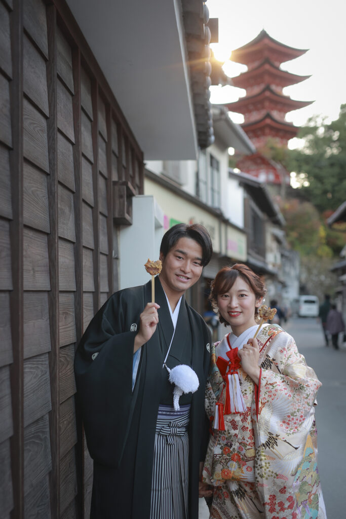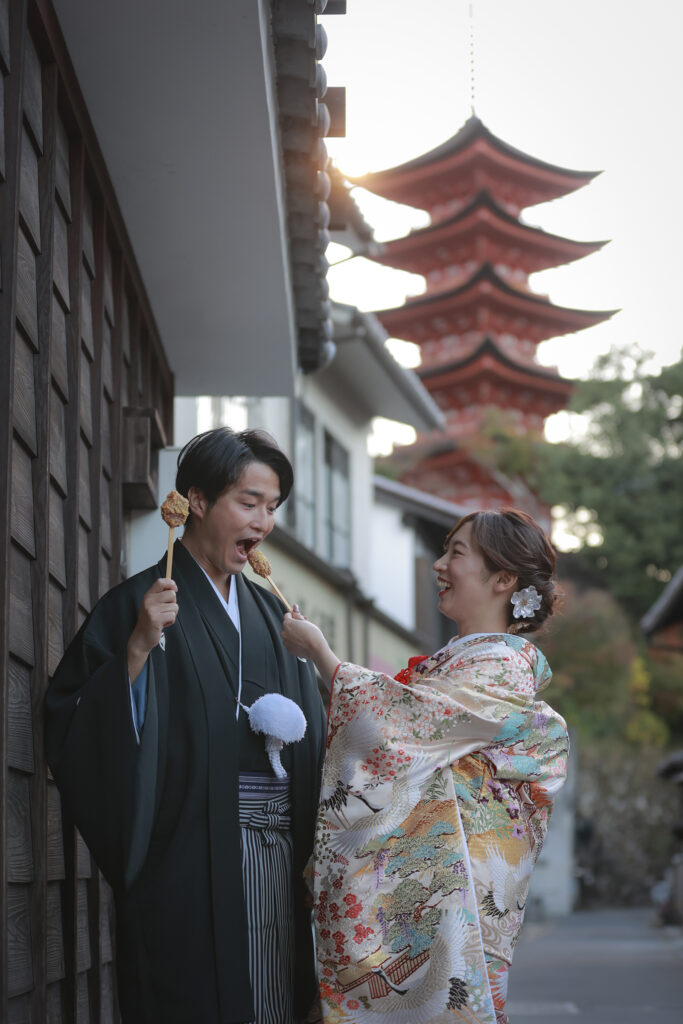 おふたりが大好きな宮島を舞台に、たっぷりのこだわりと遊び心が詰まった、お二人らしさ全開の前撮りをご覧ください。