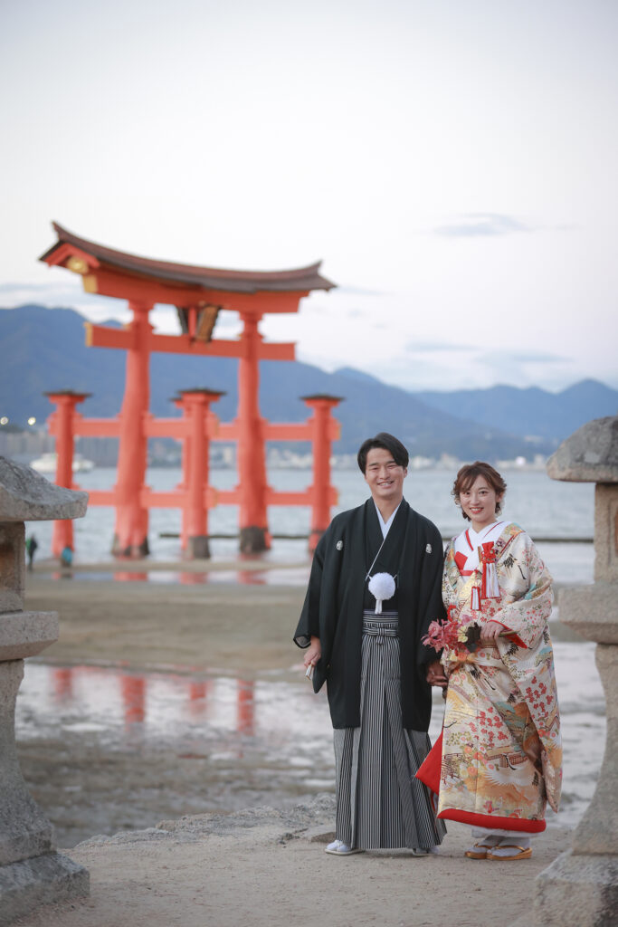 紅葉の山あいから世界遺産・宮島の大鳥居まで、広島の魅力をたっぷりと巡ったおふたりの前撮り。