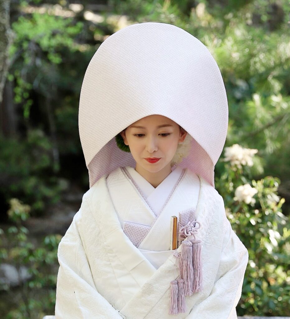 色のついた綿帽子を華帽子®︎ と名付けし和produceでレンタル可能です。合わせて筥迫小物もご用意ございます🎵