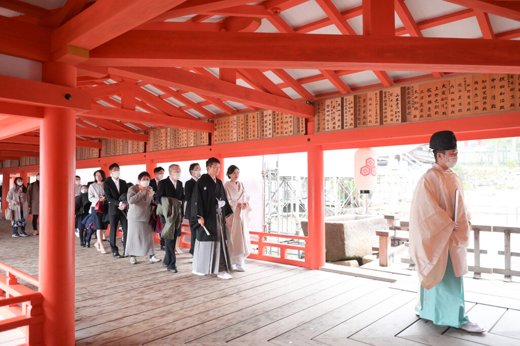 「家族みんなで、最高の思い出を作りたい」 そんなお二人の想いが形になった、とても優しく、そして力強い結婚式でした。 古式ゆかしい厳島神社の厳かな雰囲気と、お子様を囲むご親族の柔らかな眼差し。そのコントラストが、お二人らしい「新しい家族のカタチ」を象徴しているようで、私たちスタッフ一同も胸が熱くなる一日でした。