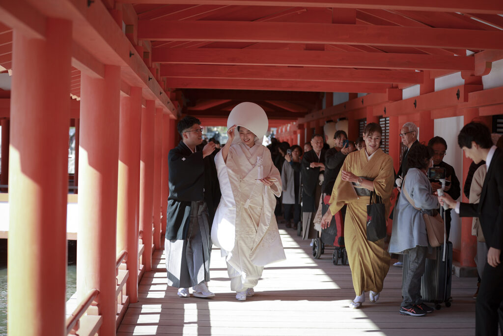 11月の宮島。紅葉が山を彩り始めたころ、世界遺産・厳島神社にて、おふたりの新たな章が静かに幕を開けました。