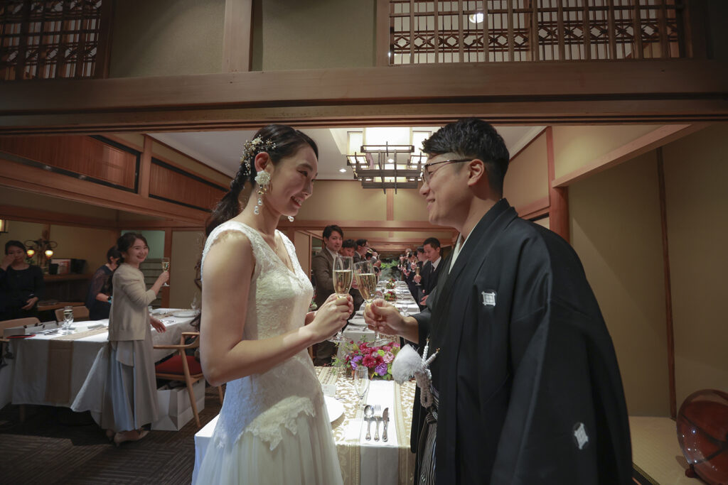 凛とした和の美しさの中に、飾らない笑顔とユーモアが息づく——そんなおふたりの人柄が、結婚式というひとつの場所に自然と集まった一日だったと思います。