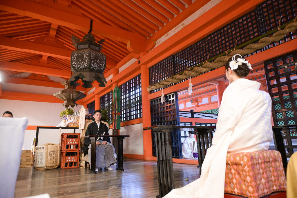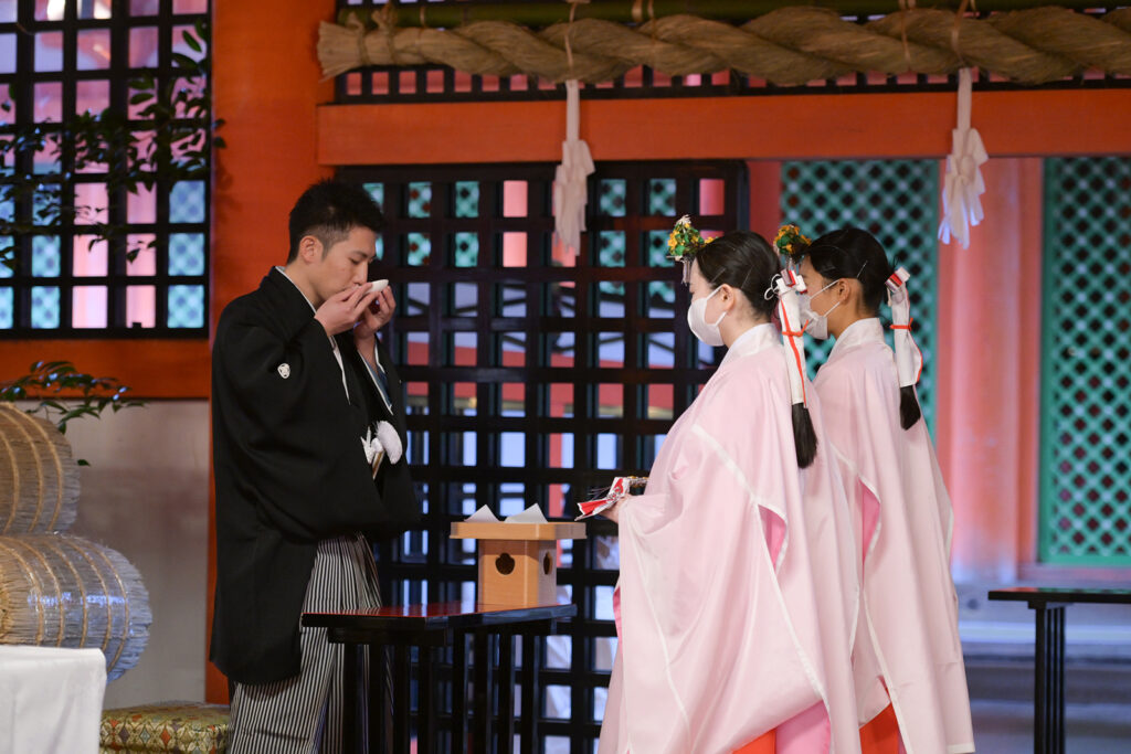 三三九度のひとつひとつの所作に、ふたりが夫婦となる誓いの重みが込められています。