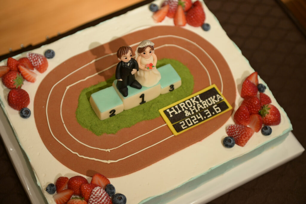 そして「いろは」での披露宴では、鏡開きにパターゴルフ、こだわりのケーキと、お二人のお人柄がそのまま形になったような、笑いと感動の溢れる一日でした。